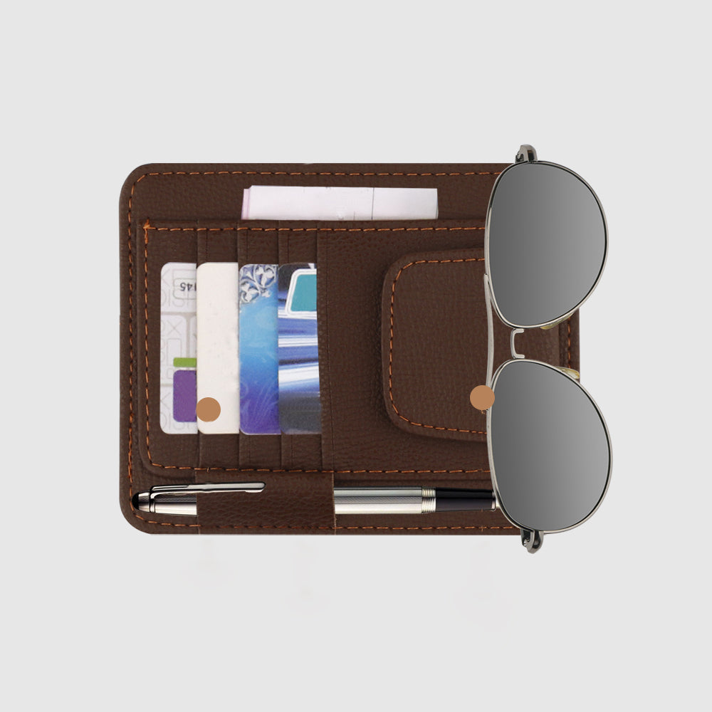 🧳 منظم واقي الشمس للسيارة مصنوع من جلد البولي يوريثان الفاخر - جيوب متعددة لتخزين النظارات الشمسية والبطاقات والأقلام وغيرها