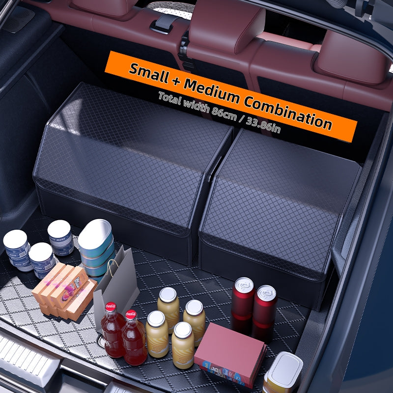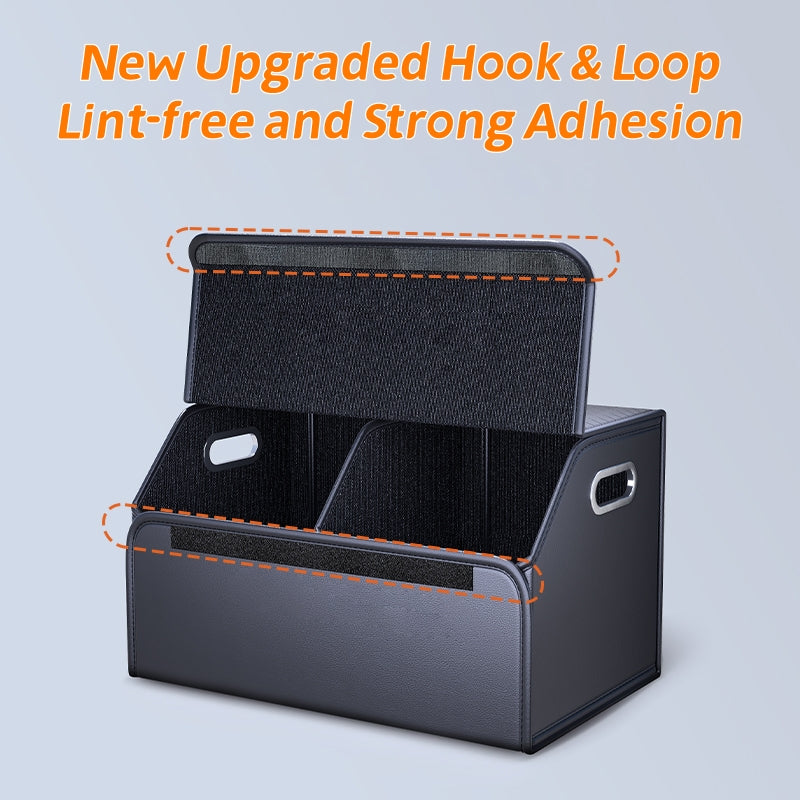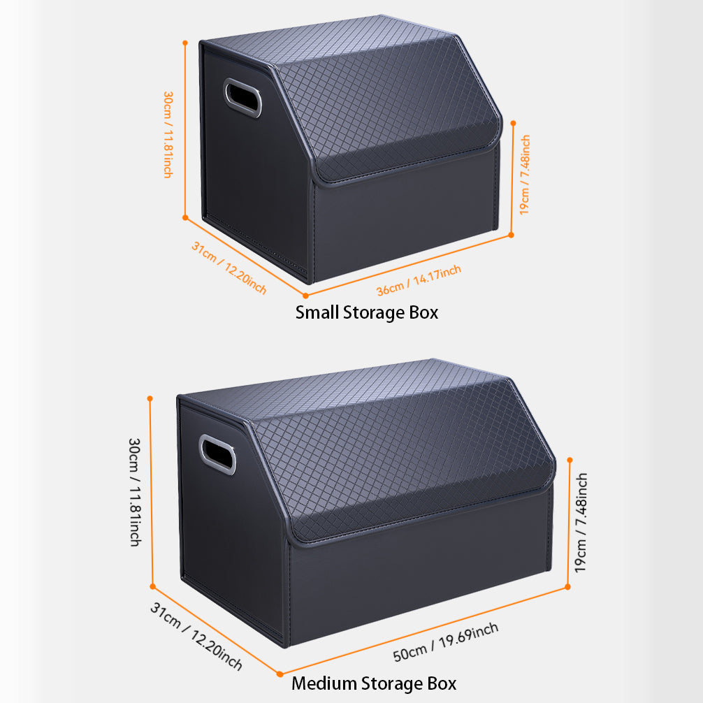 PU Leather Car Trunk Organizer – Foldable & Durable Cargo Storage Box with Lid