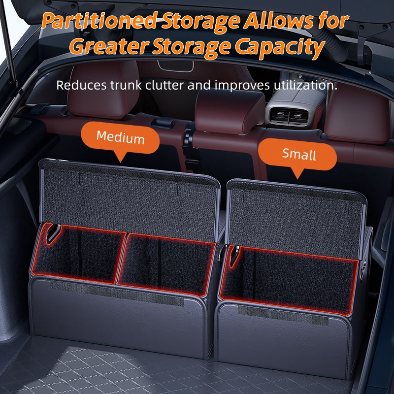 Folds easily when not in use to save space. The smart design allows you to store it flat or unfold it for full capacity, making it perfect for family cars with changing storage needs.