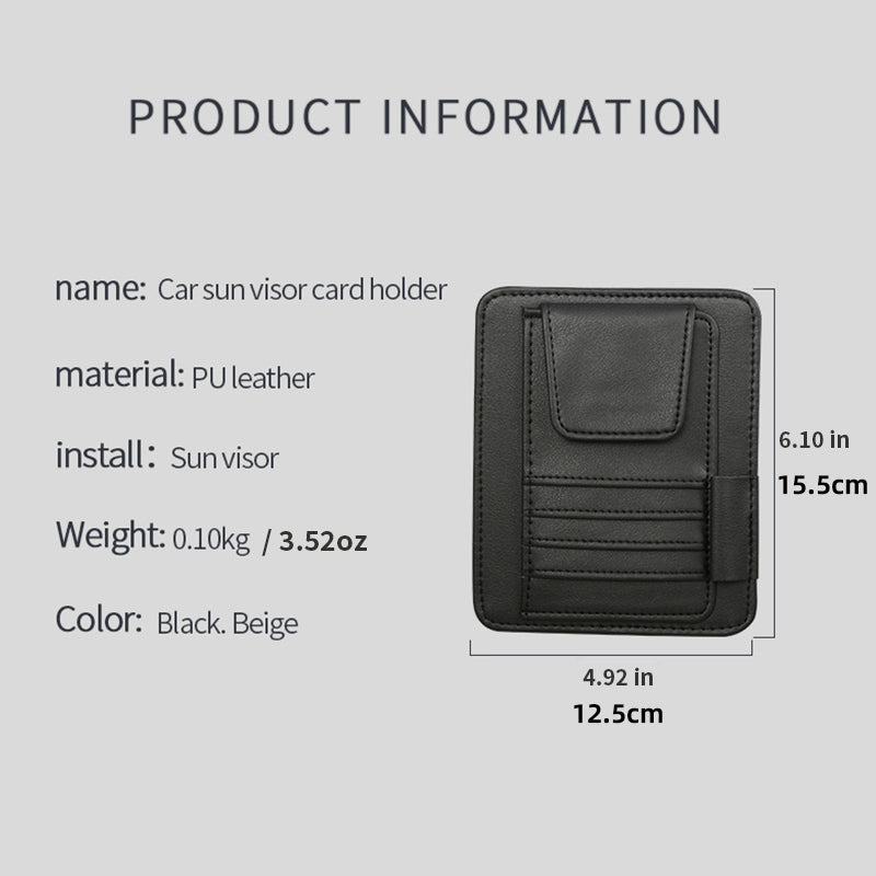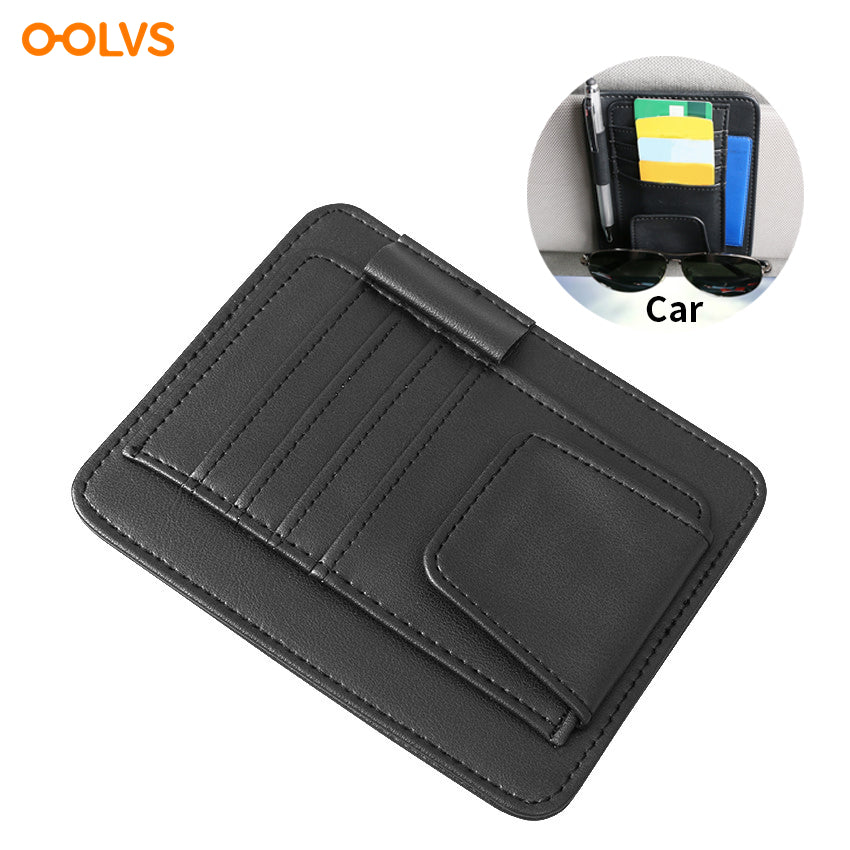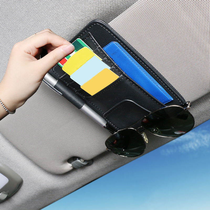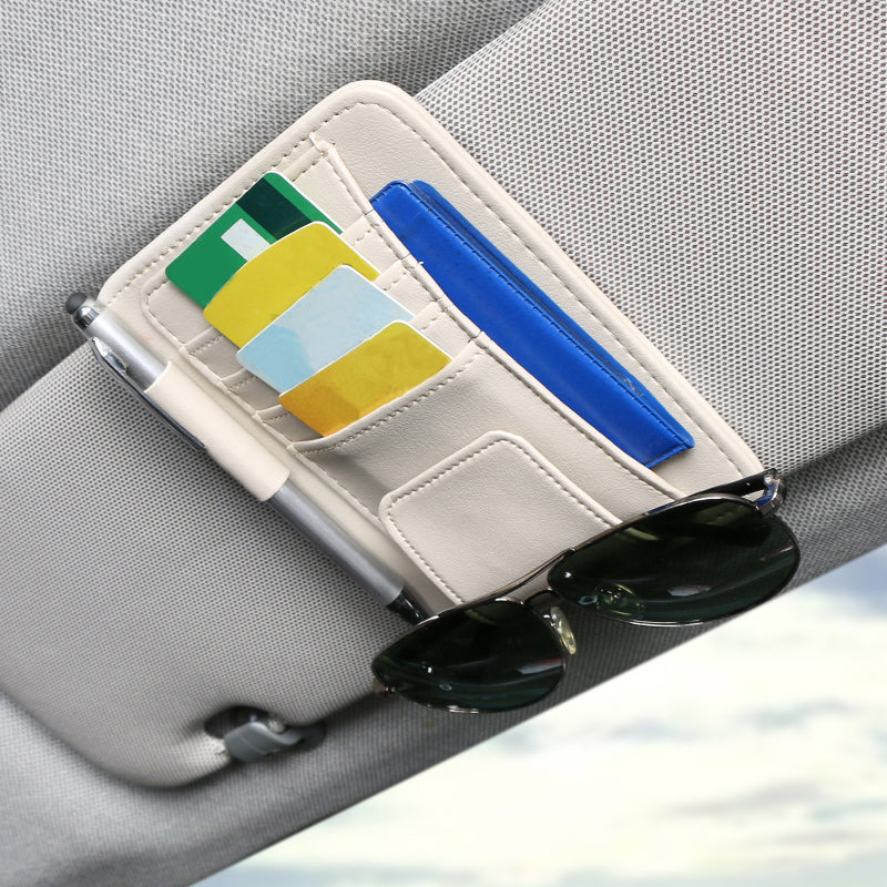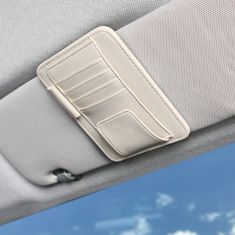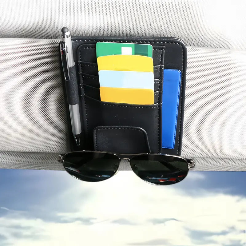 Organizer Pelindung Matahari Mobil dari Kulit Sintetis – Tempat Penyimpanan Kacamata, Kartu, Tiket & Uang Kertas