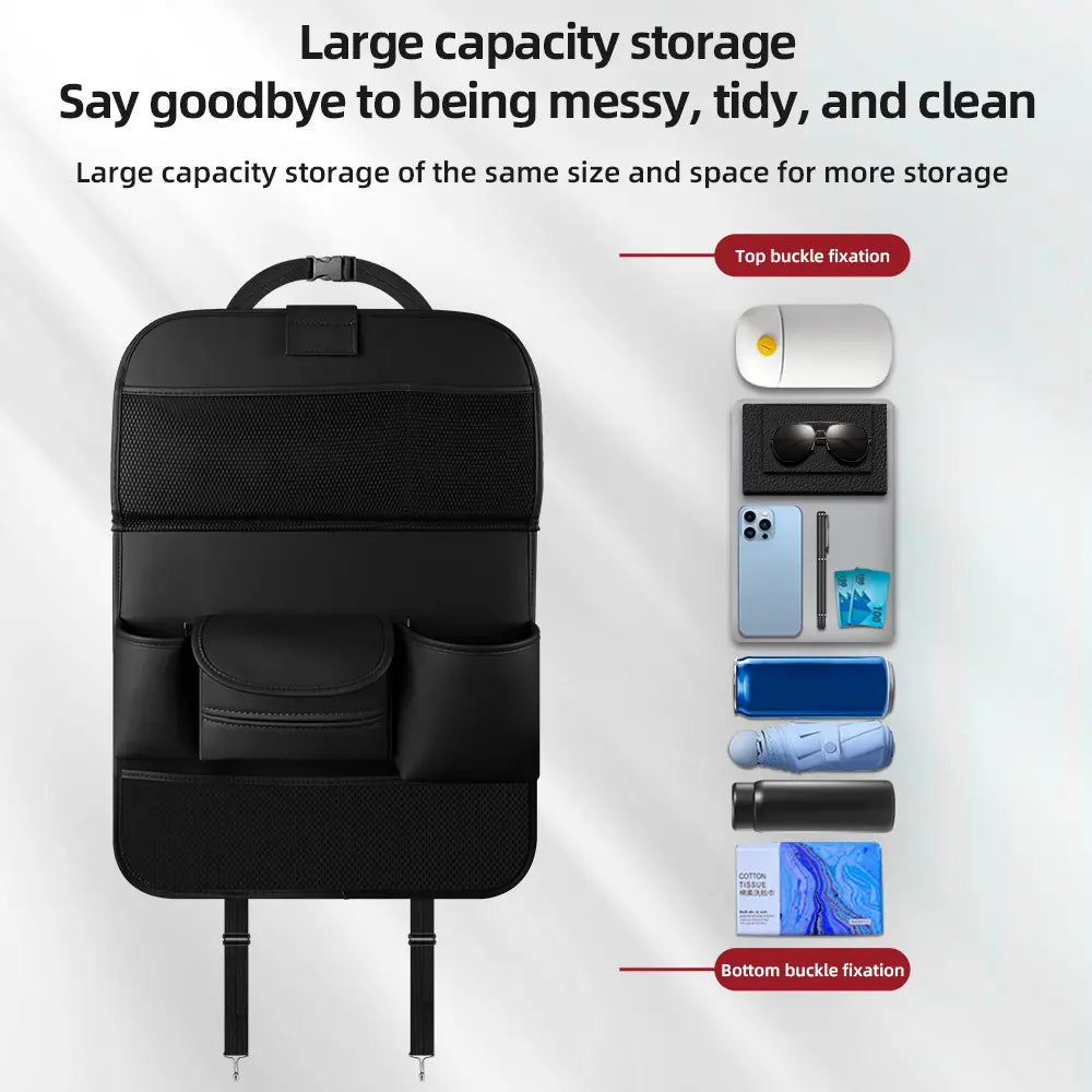 Equipped with multiple compartments to neatly organize your daily car essentials—tissues, water bottles, umbrellas, phones, tablets, snacks, and more. No more cluttered seats—keep everything within reach and well-arranged.