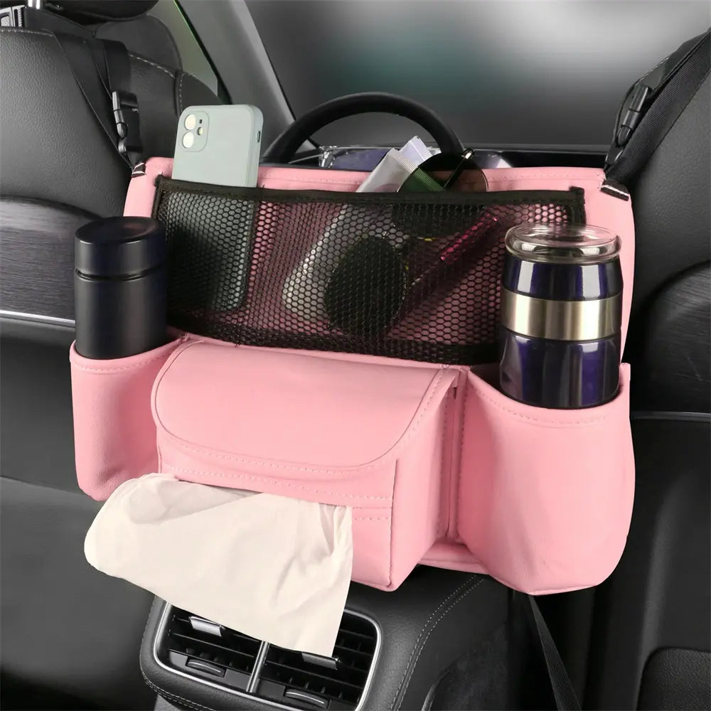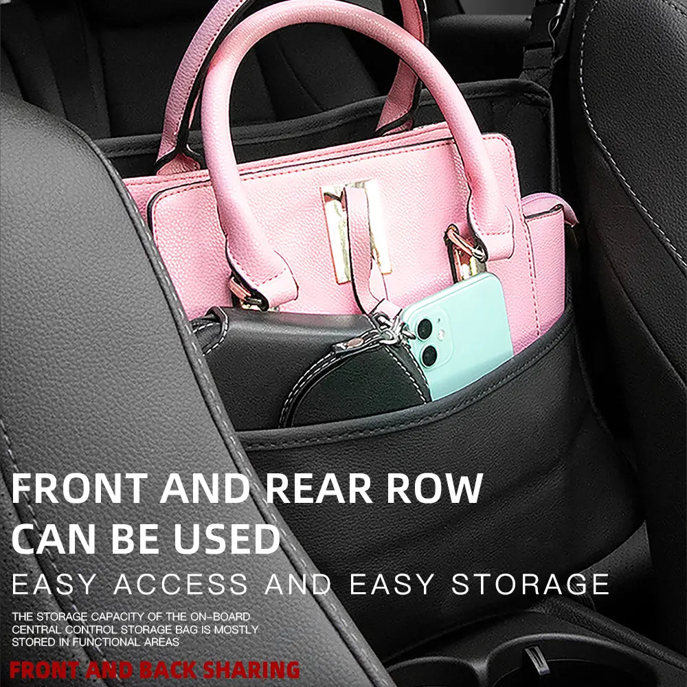 Pebbled Faux Leather Seat-Gap Organizer – Large Capacity Purse & Console Bag Between Seats with Tissue Pockets & Phone Holder | OOLVS