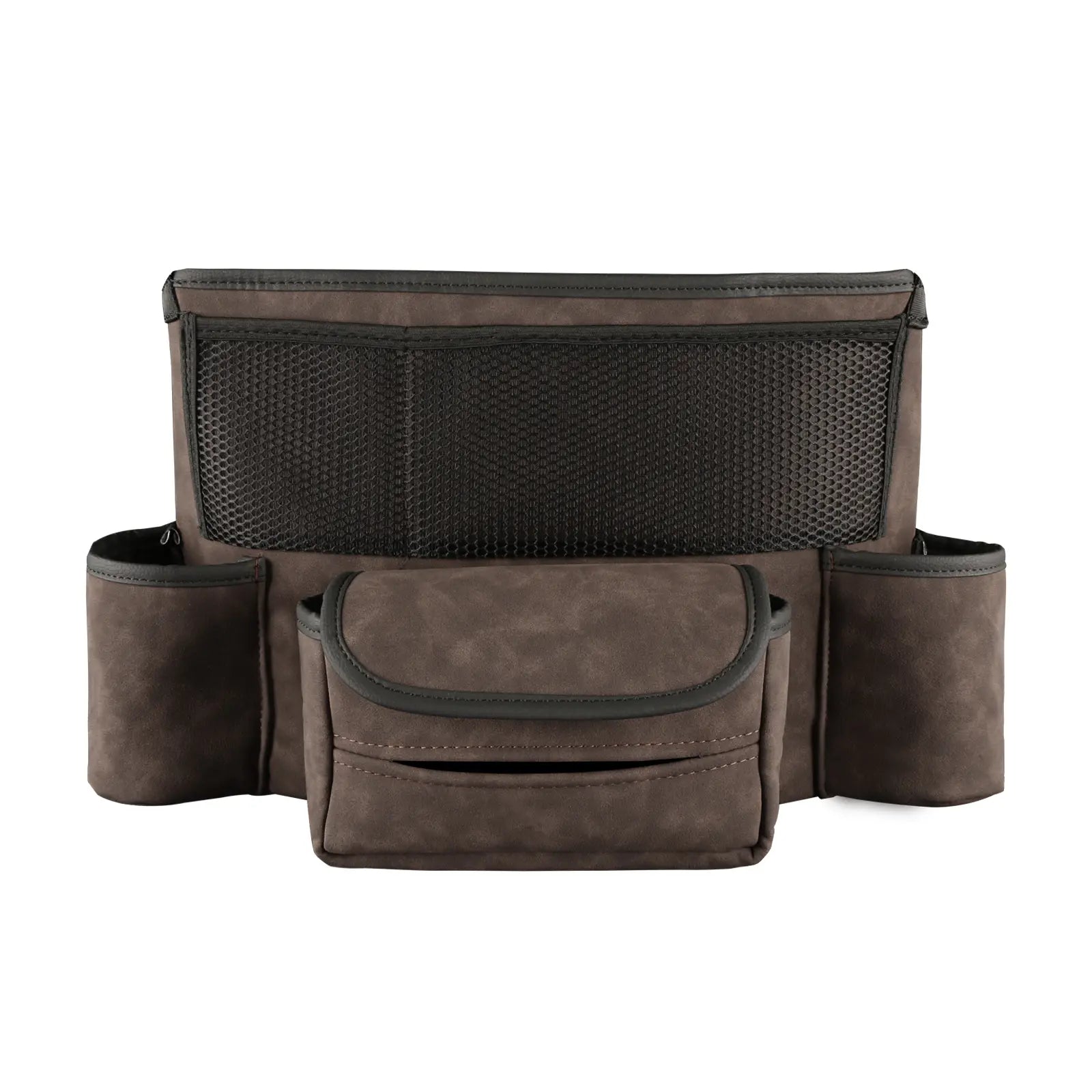 Designed to fit snugly between front seats, this organizer installs in under a minute using an adjustable headrest strap and bottom anchor. No tools required.